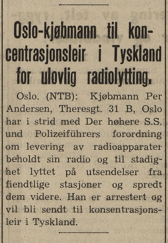 I løpet av krigsårene begynte mange nordmenn å høre på nyheter fra BBC i London. Dette var noe de tyske okkupantene likte dårlig. Det ble derfor besluttet at radioer skulle forbys i norske hjem. Fra 1941 var det kun tyske soldater og NS- medlemmer som fikk beholde radioapparatene sine. Noen nordmenn valgte da å melde seg inn i NS og spille et dobbeltspill. På denne måten fikk de beholde radioene sine og i enkelte tilfeller kunne de bidra til kommunikasjonen med England.