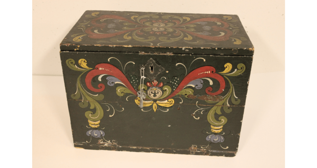 Rosemaling er en gammel form for prydmaling, som vokste frem i store deler av Europa på 1700 tallet og utover 1800- tallet. Kunstformen var populær i Norge, og rosemalte kister, skrin og annet dekorert interiør var i 1940-årene svært vanlig i norske hjem. Dette gjorde et rosemalt skrin passende som oppbevaringssted for et forbudt radioapparat, ettersom et slik skrin sjelden ville vekke øyeblikkelig mistanke.