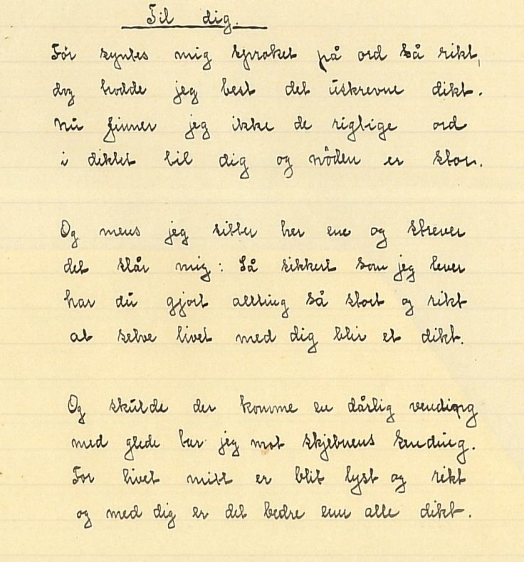 Det er slett ikke alle mennesker vi har en direkte tilgang til gjennom deres egne ord. Så det er definitivt en gavepakke når vi kan bli kjent med dem vi studerer gjennom personlige brev, dagbøker eller dikt.