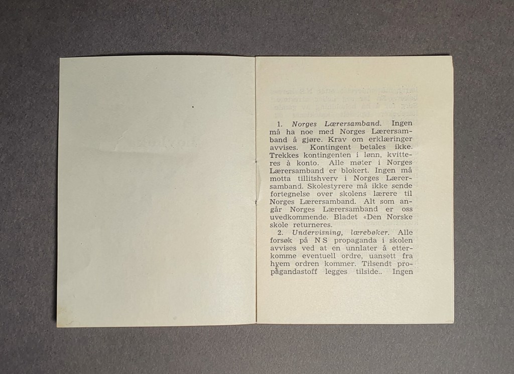 Lærerne hadde også andre måter å protestere på. I et privatarkiv av lektor Harald Dokkehaug, ved ARKIVET freds- og menneskerettighetssenter, finnes et eksemplar av den såkalte «Lovboka». Dette var et illegalt hefte i liten størrelse som enkelt kunne gjemmes, og som ble distribuert mellom lærere. Boka inneholder 13 sterke oppfordringer som skulle veilede og oppmuntre lærere til å motsette seg Nasjonal Samlings nazifiseringsforsøk av det norske skolesystemet.