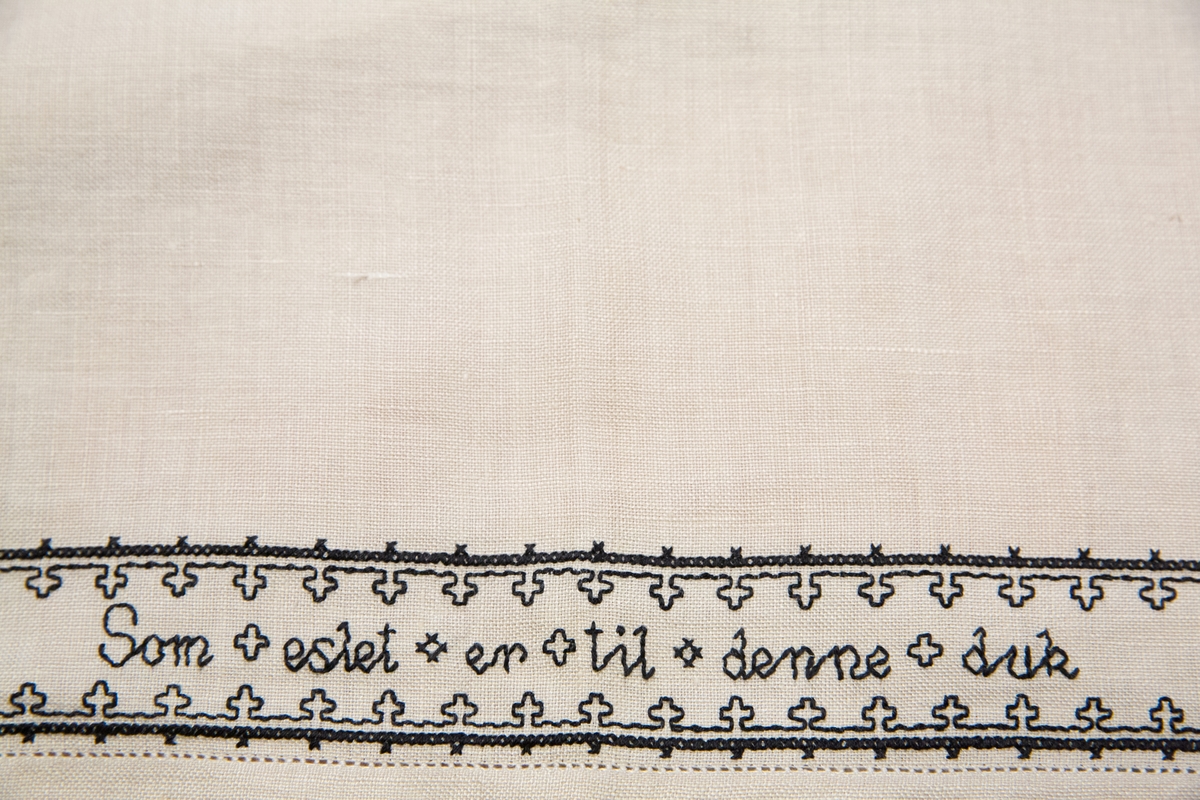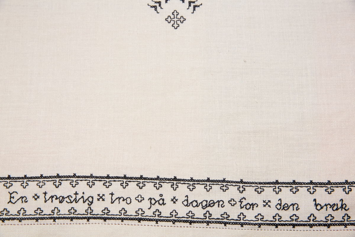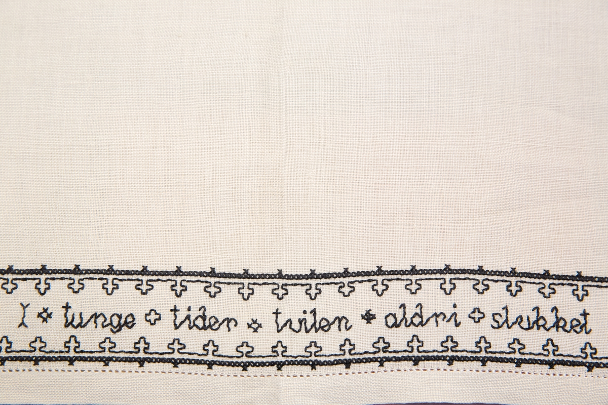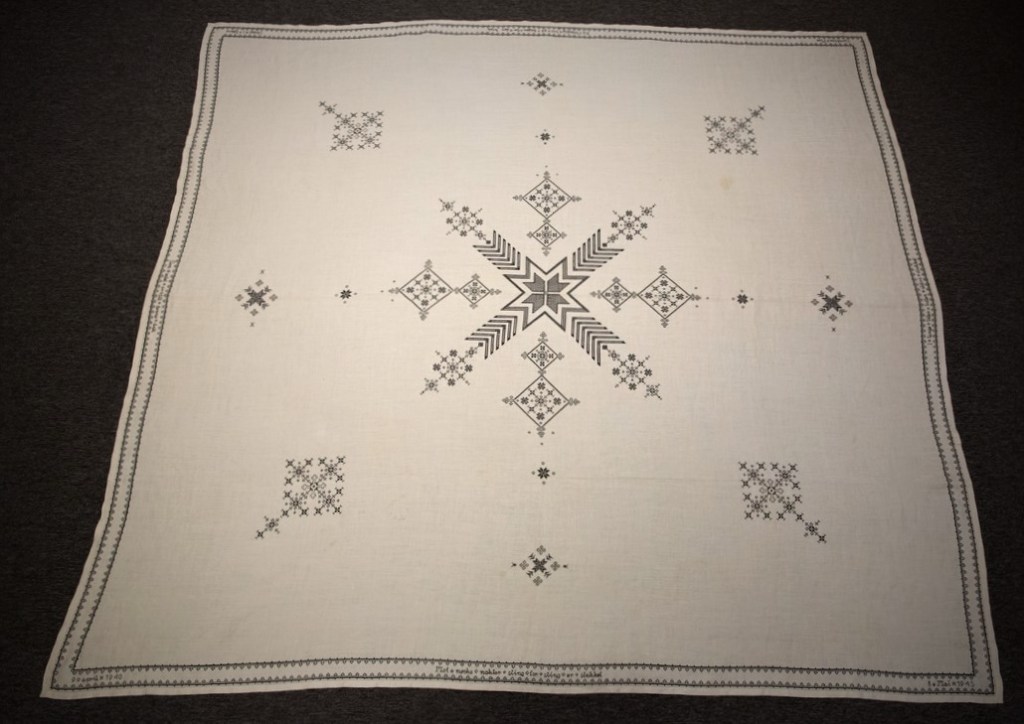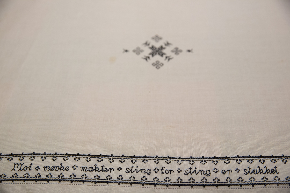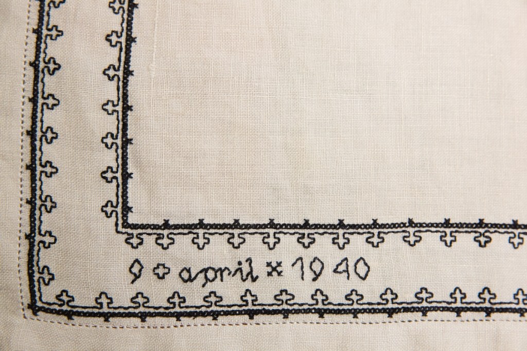 I ARKIVETs gjenstandssamling har vi en linduk med svartsøm. Den er utstilt i utstillingen «Brennpunkt Arkivet», som en del av historien om motstanden mot okkupasjonsmakten under andre verdenskrig. Hva har så en duk med motstandsarbeid å gjøre? Det skal visstnok på et tidspunkt ha blitt ytret meninger om at en duk – et enkelt stykke håndarbeid – ikke hadde noe i den delen av utstillingen å gjøre. Kanskje har mange en oppfatning om at motstand kun var noe som ble ytt med radio, spionasje og våpen?