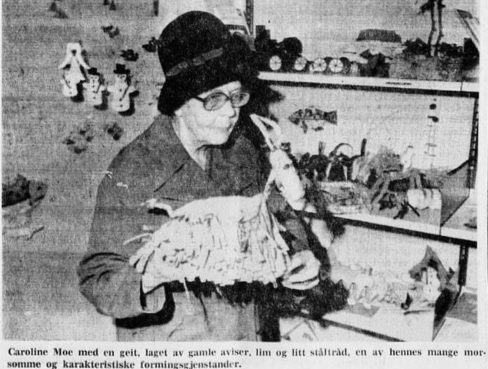 Avisarkivet til lokalavisa Grimstad Adressetidende viser at Caroline Moe var både engasjert og aktiv, enten det gjaldt soppekspertise, skolepolitikk eller lokalaktuelle saker. Hun var dessuten en pådriver for å få mer kreativitet inn i klasserommet, gjennom forming – i det faget som egentlig het tegning. Hun ville ikke begrense elevenes muligheter med kun tegneundervisning, så hun gikk inn for en mengde formgivningsteknikker og materialer som virkelig kunne få i gang barnas fantasi. Etter at hun var gått av med pensjon holdt hun dessuten formingskurs for sine tidligere kolleger, så de kunne fortsette hennes linje. Gjennom ulike artikler og kommentarer kommer det tydelig frem at hun kunne være streng, men like fullt var en svært populær lærer som elevene følte seg sett av.