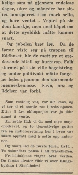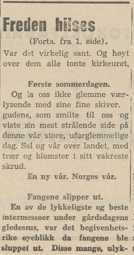 I tillegg forteller avisene oss en god del. Både gjennom det de har skrevet om disse dagene i løpet av de 80 årene som har gått siden det skjedde, og i de første utgivelsene like etter fredserklæringen.